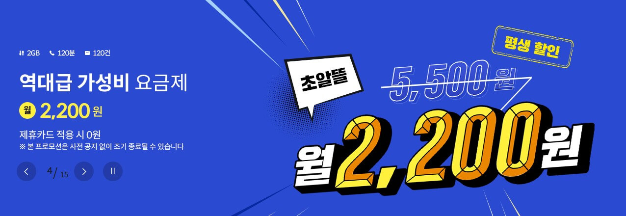 현재 기본 100GB에 매월 150GB 추가제공 월 250GB를 사용할 수 있으며, 소진 시 최대 5Mbps 속도로 무제한 데이터 이용이 가능합니다. 현재는 이벤트 금액으로 3개월 할인을 해주며, 월 11,300원입니다. 할인 이벤트가 끝나면 월 41,250원으로 금액이 올라갑니다.