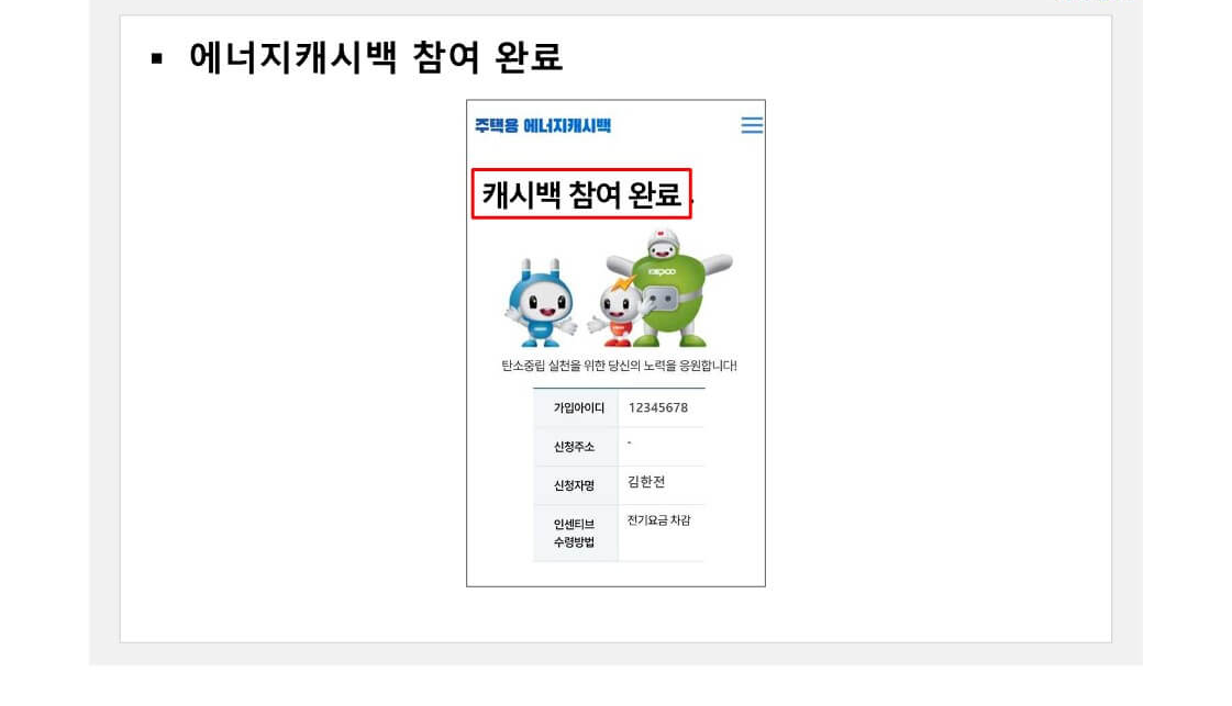 * 아파트단지 내 캐시백을 지급받는 개별가정의 사용량은 캐시백 산정에서 제외됩니다.